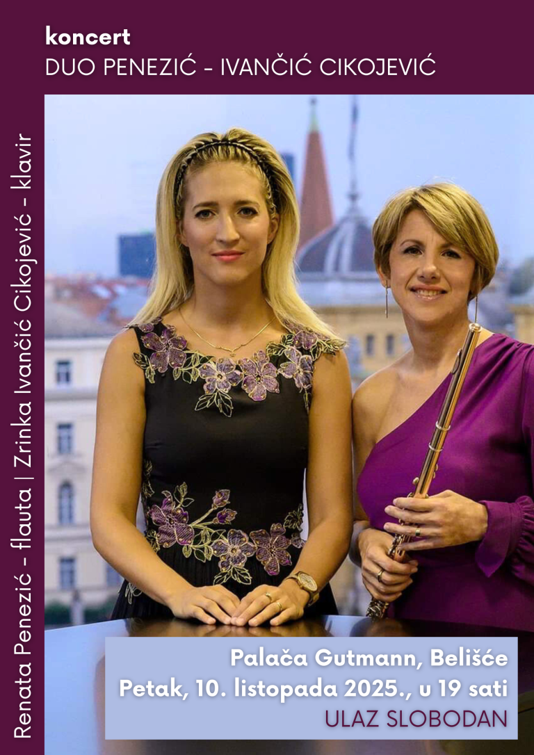 U petak, 10. listopada 2025. godine, u 19 sati, u organizaciji Centra za kulturu Sigmund Romberg, održat će se koncert “DUO Penezić – Ivančić Cikojević”.